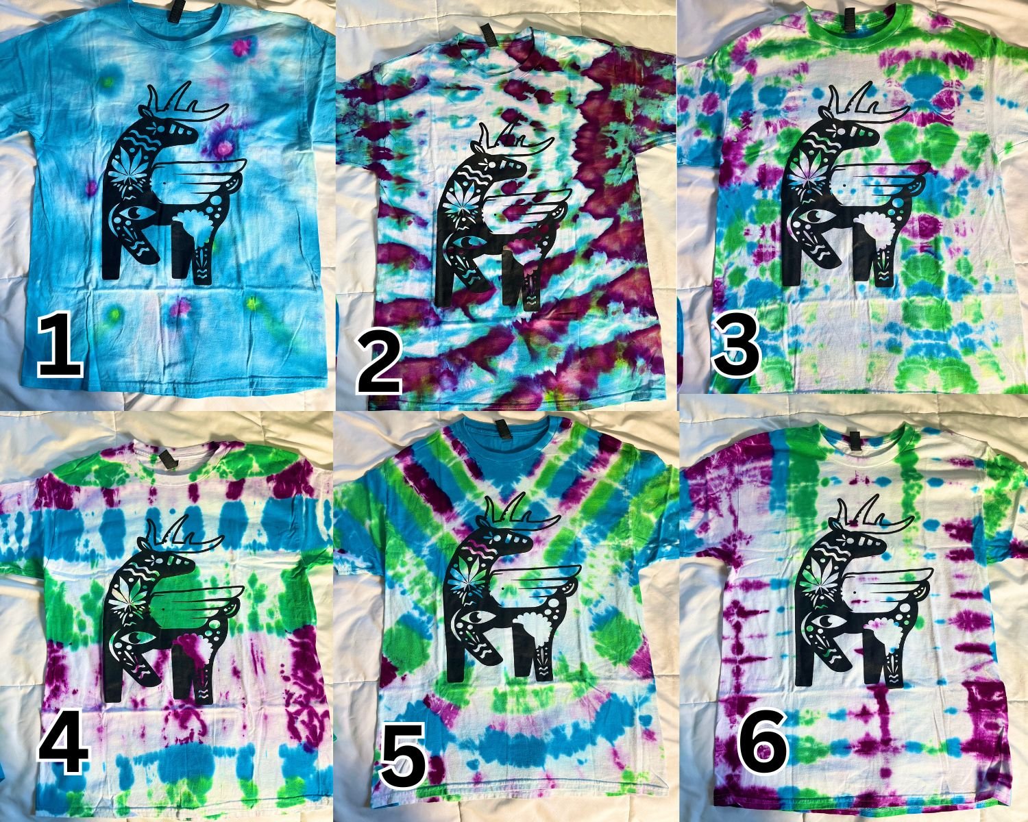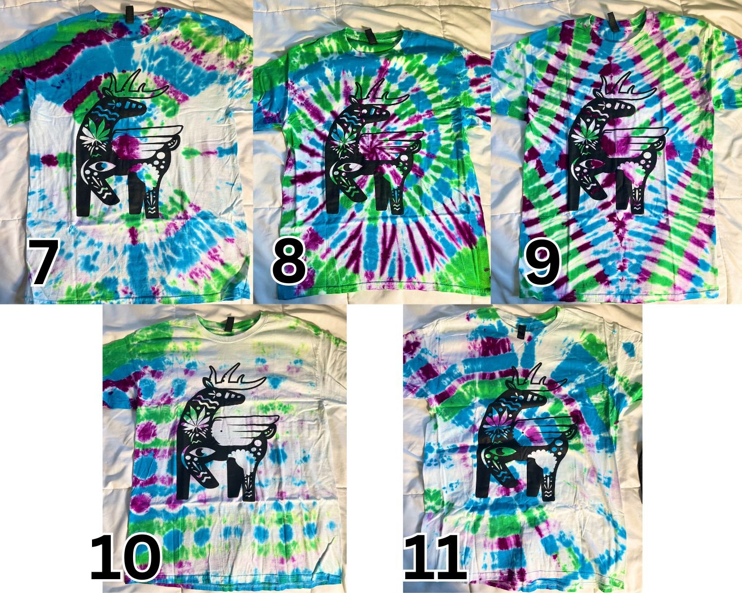 Size LARGE 100% cotton 1 of a kind Tie Dye T-shirt by Mrs. Ganic with stealth Alebrije logo. Each shirt includes a freebie 3pk of Griswold Family Tree auto fems.