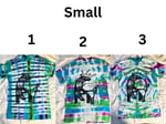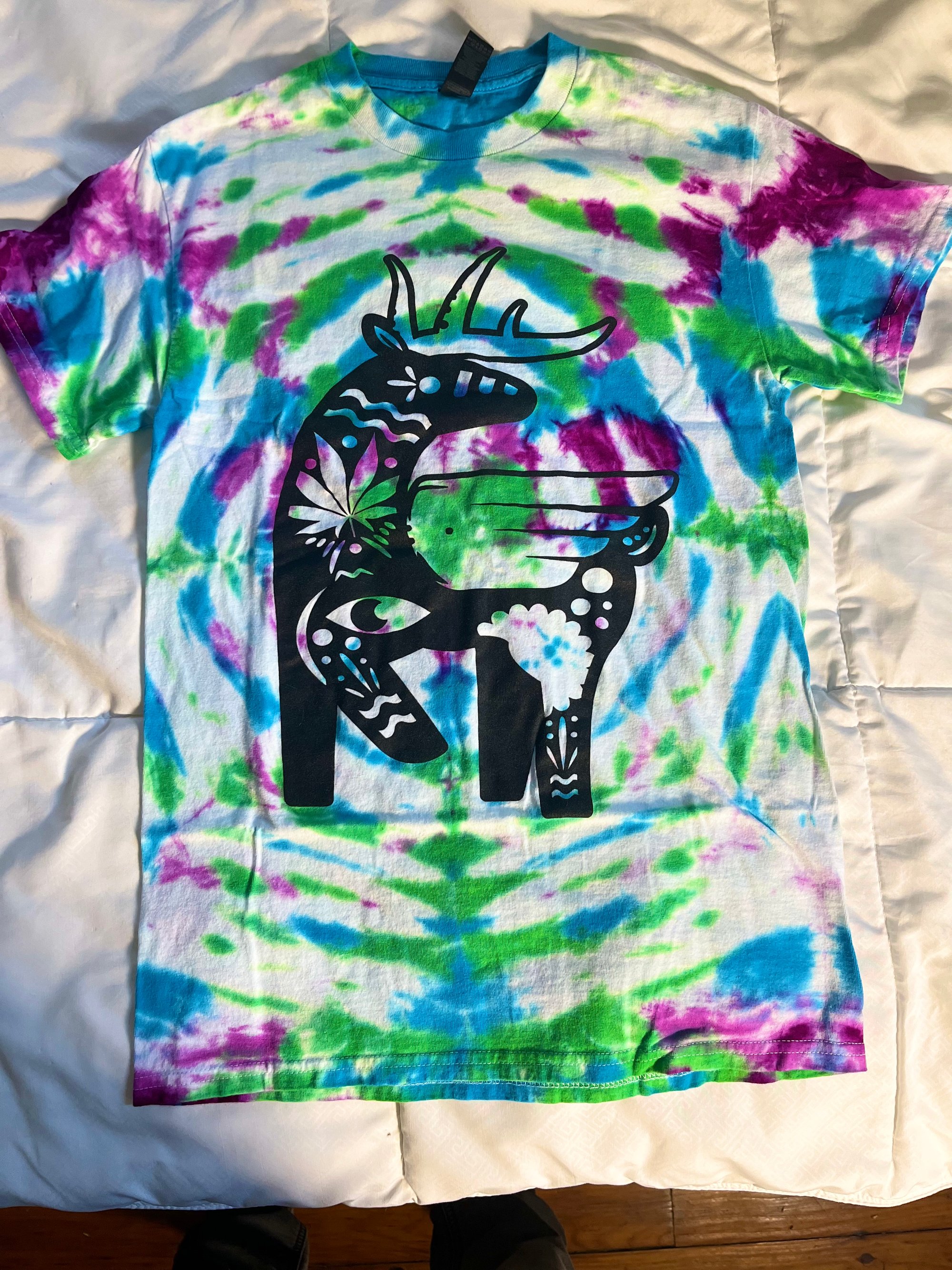 Size SMALL 100% cotton 1 of a kind Tie Dye T-shirt by Mrs. Ganic with stealth Alebrije logo. Each shirt includes a freebie 3pk of Griswold Family Tree auto fems.